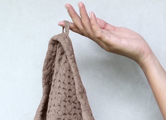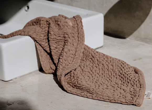 The Heveya Vegan Cotton Towels have a flat-weave honeycomb design.